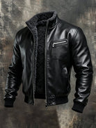Noah | Warm Black Leather Jacket With Sherpa Liner