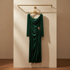 A composed midi dress built for steady seasonal wear with understated style.